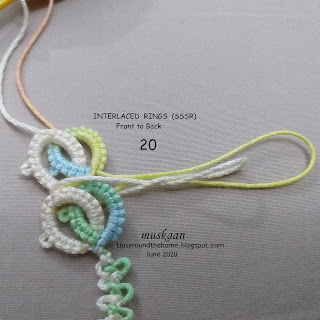 7. This is how the 2 rings will look. Ring1 is still open, and interlaced Ring2 is partially tatted.